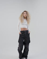 The women's cropped long sleeve tee is crafted in a cotton and spandex blend. It takes features from our signature baby tee such as the cropped hem, a fitted silhouette and a rounded ribbed collar. Each garment is pre-shrunk and treated with a softening wash.